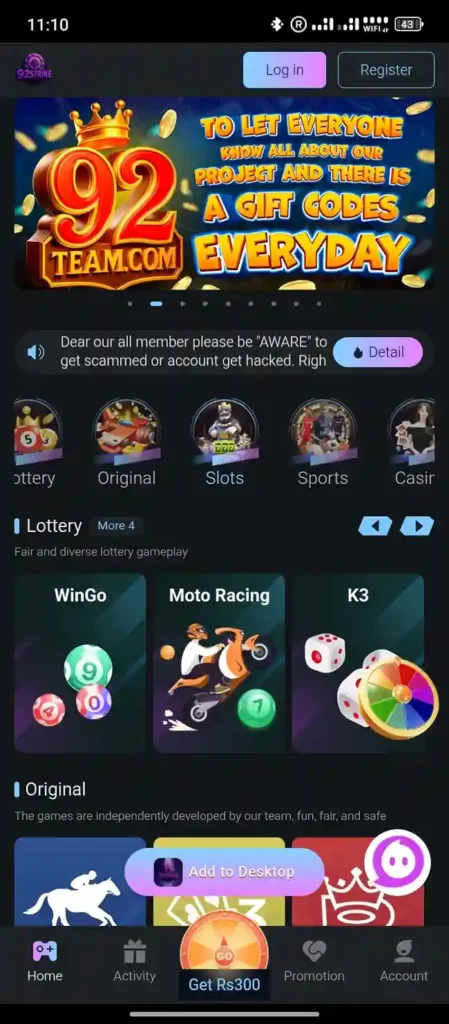 92 Strike Game is a light weight mobile app Android and possibly available for iOS offering a variety of mini games, rewards, and earning features all wrapped in a user friendly interface.